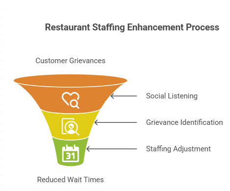 Example 2: A restaurant uses social listening to spot complaints about long wait times and improves staffing schedules.